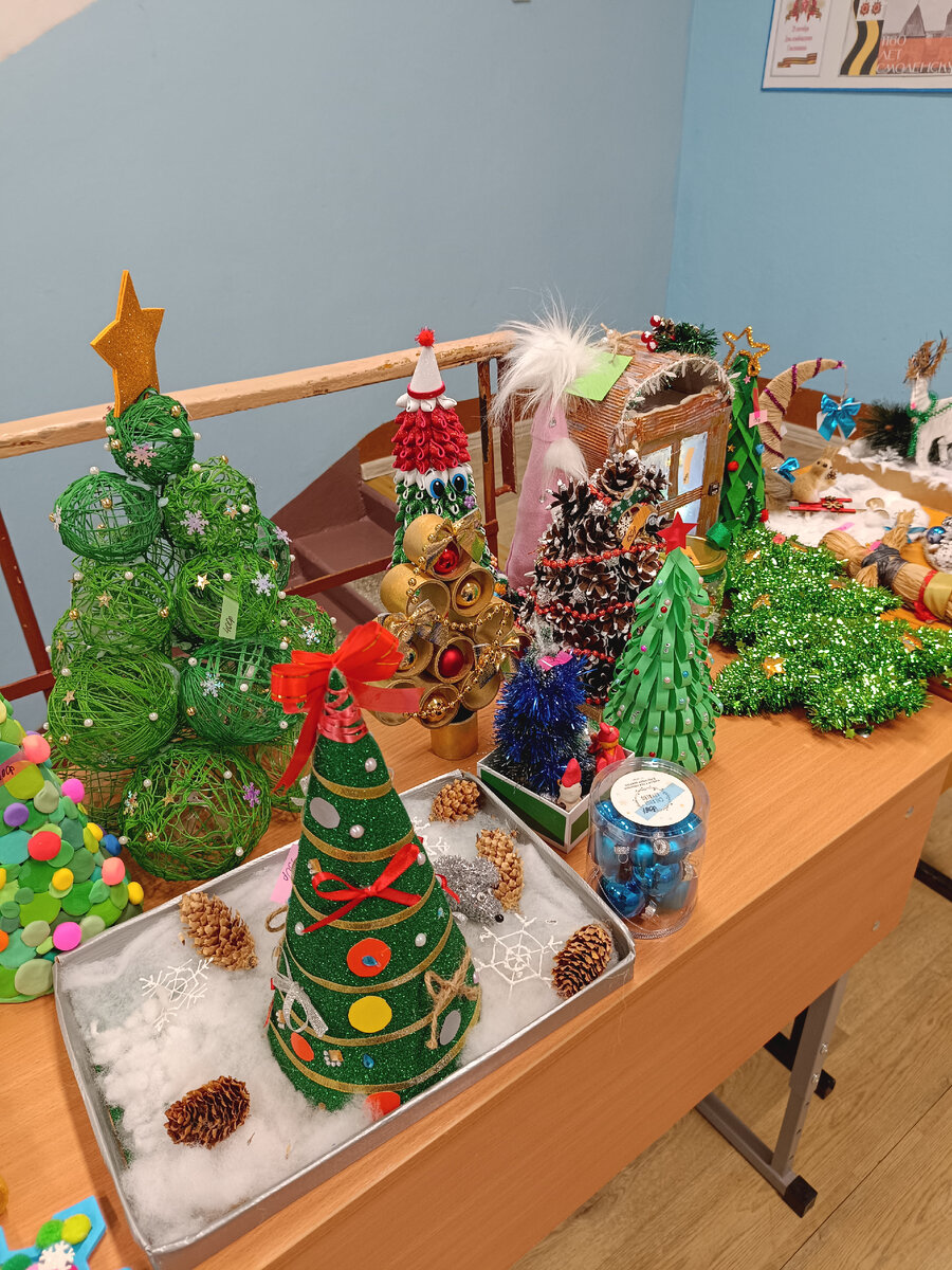 Всем привет👋 У нас в школе прошла благотворительная ярмарка в честь наступивших и впереди грядущих праздников. Все представленные на ярмарке экспонаты сделаны учениками нашей школы. Покупателями были работники школы, так как дети у нас еще не вышли с новогодних выходных. Всё очень красивое и интересное. Тем более, что дети это делали своими руками. Это предает какой-то определенный шарм вещам, свою изюминку. Я очень люблю такие вещи, разные поделки своими руками. И никогда не упускаю шанса что-то приобрести себе. Да и другие учителя тоже с удовольствием взяли себе поделки детей. Итак, про ярмарку. Чего у нас тут только не было. Разные елки из всего и вся: из ватных дисков, шаров из ниток, конфет, помпонов, фоамирана, фольги, шишек и других материалов. Даже мягкая елка была. Если кто-то хотел себе елку, то выбрать точно было из чего. Вместе с елками был и большой выбор разных елочных украшений и новогодних венков. Любых цветов, форм и размеров. И вот такие разные чудные зверюшк