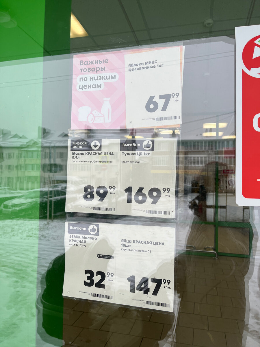 Всем доброго дня, утра или вечера дорогие читатели 😊 Ну вот год только начался, новогодние праздники подходят к завершению, осталось только отметить старый Новый год ☺️ А у магазинов все как всегда, например вторник это день когда обновляют скидки и акции в Пятерке, пошла я значит на разведку, посмотрю, что там интересного имеется 🧐 Эта статья носит исключительно развлекательно информационный характер и это никакая не реклама, никого не призываю к покупке какого-либо товара. На входе одни из актуальных скидок на «важные товары по низким ценам» 😆 Курица заметили как снизилась в цене? 169 р за кг 😉 Захожу в магазин в поисках еще выгодных товаров 🏃♀️ Товары для дома и посуда Начинаю обзор из хозяйственного отдела, тут можно купить набор полотенец из 100 % хлопка. В наборе 2 полотенца размер 30х50 70х120, цена 599 р 🔥 И на выбор два цвета- розовый и коричневый ⤵️ Набор красивой посуды из стекла, на которую сейчас желтый ценник 😍 Кружки и бокалы, в оттенке темно- зеленого цв
