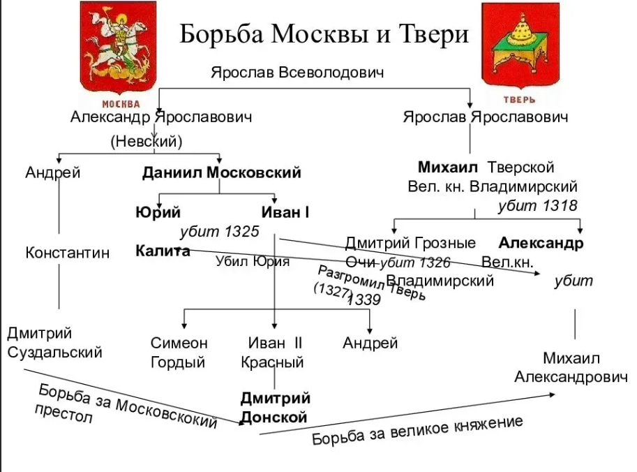 Первая половина XIV в. — время после прекращения смут в ордынском улусе — стало временем наивысшего могущества Золотой Орды. Принявшая ислам в правление хана Узбека (1312—1342) Золотая Орда была одной из наиболее могущественных держав мусульманского мира. Правители Орды вели активную внешнюю политику, стремясь укрепить свои позиции на Кавказе и овладеть богатыми землями Азербайджана, а также расширить свои владения на Балканах. В этих условиях ханы были заинтересованы в том, чтобы в подчиненном им «русском улусе» была стабильность и оттуда исправно поступала дань. Созданная в середине XIII в. для достижения этих целей «баскаческая» организация во время смут 80—90-х гг. XIII в. перестала существовать, и ханы не стали ее восстанавливать. Они нашли другое решение: избрать среди князей Северо-Восточной Руси одного, который бы поддерживал порядок на территории и нес ответственность за сбор выхода в Орду. Это должен был быть кто-нибудь из числа наиболее сильных и влиятельных князей, способных справиться с такими задачами. При выборе подходящего кандидата хан должен был считаться с переменами, происшедшими в жизни Северо-Восточной Руси во второй половине XIII в. Вторая половина XIII в. стала временем усиления феодального дробления Северо-Восточной Руси. К концу столетия здесь появилось 14 княжеств, некоторые из которых делились на более мелкие владения. Такое дробление поощряла Орда. Давая ярлыки на те или иные земли младшим членам княжеского рода, она тем самым гарантировала сохранность их владений. Все это делало задачу управления «русским улусом» достаточно сложной. Во главе должен был быть поставлен достаточно авторитетный правитель, обладатель достаточно крупного и сильного центра. В этом отношении к концу XIII в. также произошли существенные изменения. Старые центры земли, такие, как Ростов и Суздаль, постепенно приходили в упадок, а усиливалось значение таких политических центров, как Тверь и Москва, их князья играли все более заметную роль в княжеских смутах последних десятилетий XIII в. Особенно быстро развивалась Тверь. С 60-х гг. XIII в. она стала центром самостоятельной епархии. Здесь, впервые возобновилось каменное строительство. В 1293 г. рать Тудана не решилась штурмовать город, куда, спасаясь от нашествия, укрылось население «из иных княжений и волостей». Подобных сведений относительно Москвы не имеется, но о силе этого центра уже в конце XIII в. говорит успешное расширение территории Московского княжества при его первом правителе Данииле Александровиче, младшем сыне Александра Невского. Он сумел отобрать у соседних князей и присоединить к своим владениям такие крупные города, как Коломна и Можайск. По мнению исследователей, благодаря миграции населения территории Тверского и Московского княжеств оказались более населенными, чем другие, отчего князья могли располагать более крупными средствами и содержать более значительное войско. В 1305 г. хан Тохта передал владимирский великокняжеский стол тверскому князю Михаилу Ярославичу. Михаил Ярославич, считавший себя законным обладателем великокняжеского стола как старший из потомков Всеволода Юрьевича, был высокого мнения о своей власти. Михаила поддерживали великокняжеские бояре. Стремление укрепить великокняжескую власть в Новгороде привело к ряду конфликтов великого князя Мих