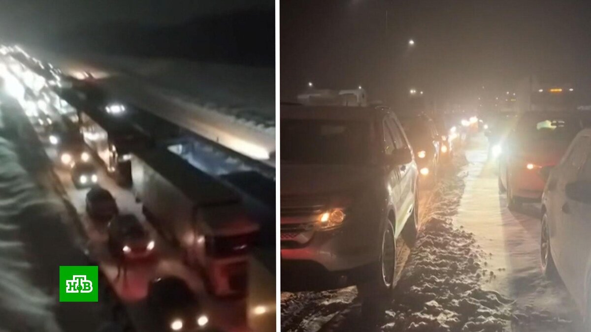 Трасса М-4 встала намертво: сотни машин провели ночью без движения 10 часов