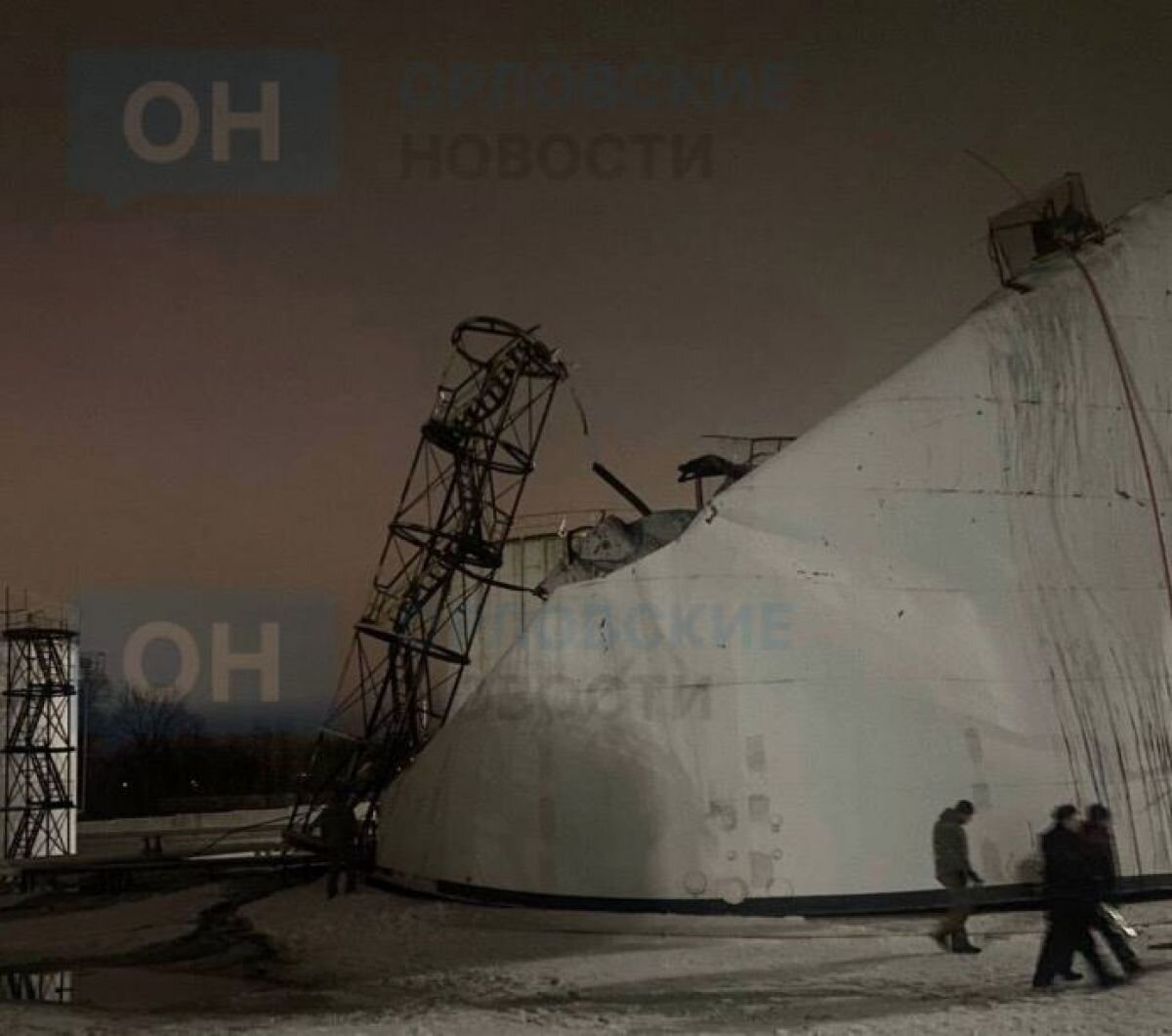 В распоряжении "Орловских новостей" оказалось фото с места сегодняшней атаки на орловское нефтехранилище. На нем видны повреждения, которые получил один из нефтяных резервуаров. Напомним, для атаки на инфраструктурный объект использовался дрон-камикадзе. По словам губернатора Андрея Клычкова, серьезных последствий удалось избежать, а последствия атаки будут устранены. Кроме того, еще один дрон упал на территорию токарного цеха "Орелэнерго". Вероятно, это произошло вследствие своевременной работы подразделения РЭБ, а реальной целью атаки был более важный объект. Еще один беспилотник упал на нежилой объект в Орловском муниципальном округе. Куда именно был направлен этот БПЛА неизвестно. Еще по теме:«Мы видим, что враг не дремлет». Главное из эфира КлычковаСтали известны подробности атаки на объект ОрелэнергоВыросло число пострадавших после атаки дронов на орловские объекты ТЭК