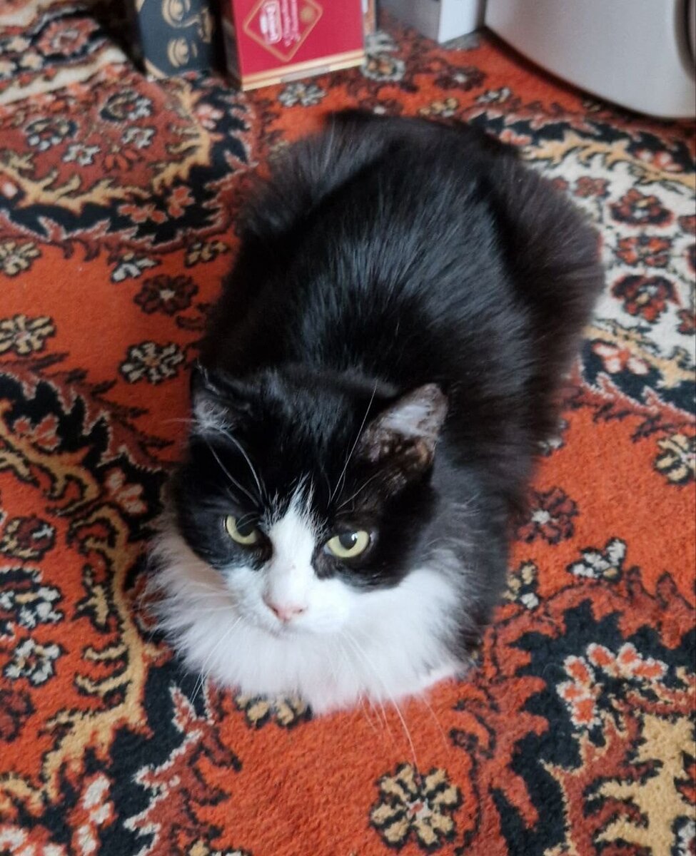 9.01.24. Балаково Моя передержка Лапка-возрастная кошечка. Возрас12-14 лет Немного истории. Я знакома с ней 9 лет, из них 7 лет живет у меня. Обитала она около маг "Дубки" по Комарова, около Сбербанка. Ее многие любили, кормили. Попала ко мне в тяжелом состоянии. Был мастит, каждая грудь не умещалась в мою руку. Потом почки. Лечила долго, что спасло ей жизнь. В тот период собаки много сгубили кошек, вернее всех. Далее пробовала пристроить, но никак не получалось. Молодая, красивая, всем нравилась, но домой никто не захотел взять, хотя кошка очень воспитанная. На улицу выпускать не стала, страшно было за ее жизнь Кошечка хромает на одну лапку-застарелый перелом, переехала машина. Так и осталась кошечка жить у меня. Жила немного у сына, где он ее баловал по полной. Он был очень удивлен, почему такая умная, воспитанная кошечка так и не приглянулась ни кому. Даже усыновила двух чёрных сироток от разных кошек, решила, что это ее котятки(ее последние котятки были черными). Аленушка прожила 4