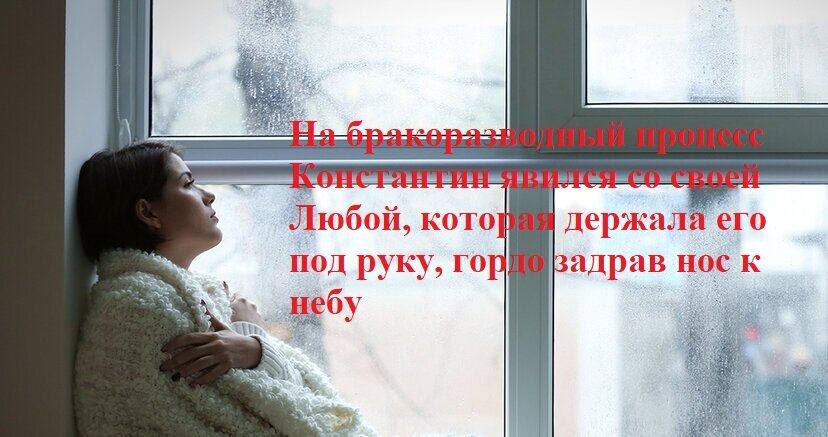 На бракоразводный процесс Константин явился со своей Любой, которая держала его под руку, гордо задрав нос к небу.