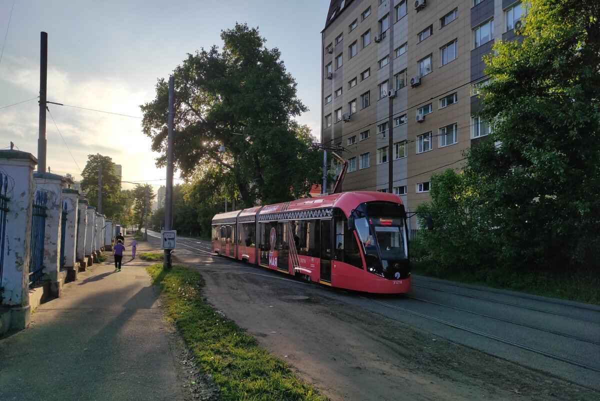 На дворе был май 2023 года, я возвращался с работы пешком через Калитники, где по тихой Большой Калитниковской улице ездят изящные трамваи "Витязь", закупаемые Собяниным с 2017 года. Во как старается человек для нашего города! Мне попался трамвай в оклейке ко дню Победы - красив, чертяка!