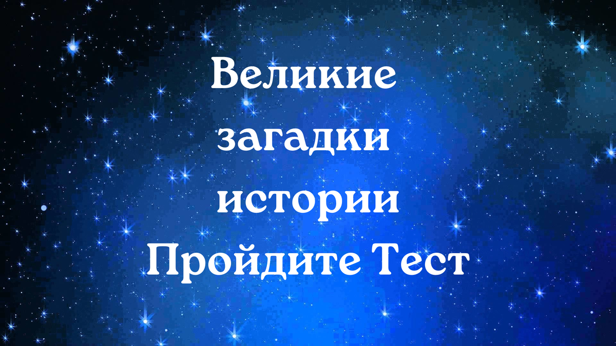 В то время как история ставит своей задачей описание достоверных фактов, довольно часто человечество сталкивалось с великими загадками и тайнами, которые пыталось объяснить и осознать. Знаете ли Вы о них? Пора блеснуть своими знаниями и в конце теста узнать свой результат! Ну что, готовы? Тогда скорее приступайте к тесту! Ответы на тест смотрите на видео ниже Поделитесь тестом с друзьями и узнайте сколько баллов они набрали. Обязательно напишите свои результаты в комментариях. Также не забудьте подписаться на канал и поставить лайк. Если Вам понравилась статья, будем признательны за Донат на развитие канала : https://pay.cloudtips.ru/p/70fbc8cf - Отправить