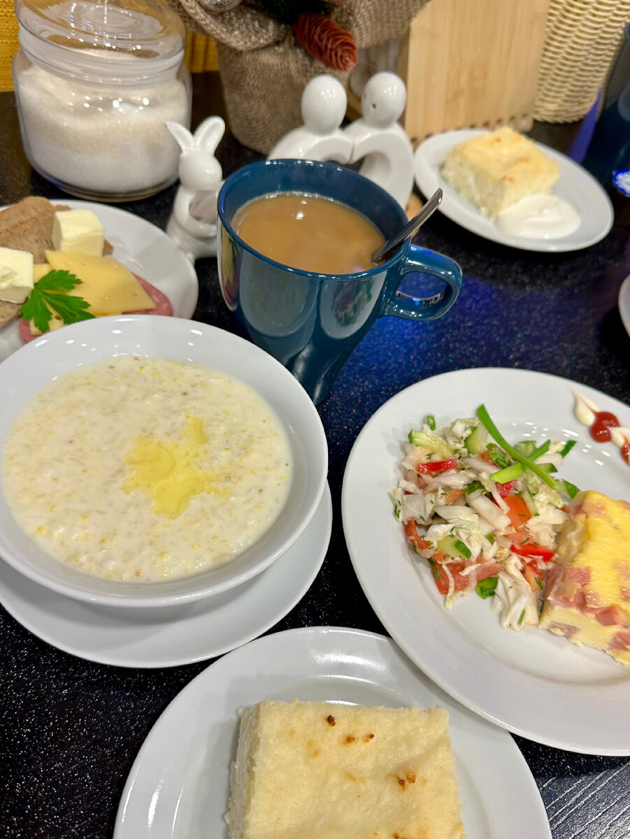 Отель «Санта Русса» предложил вполне себе сытный и вкусный завтрак, который был включен в стоимость номера.