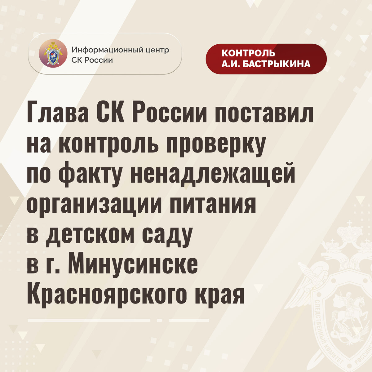 Глава СК России поставил на контроль проверку по факту ненадлежащей организации питания в детском саду в г. Минусинске Красноярского края