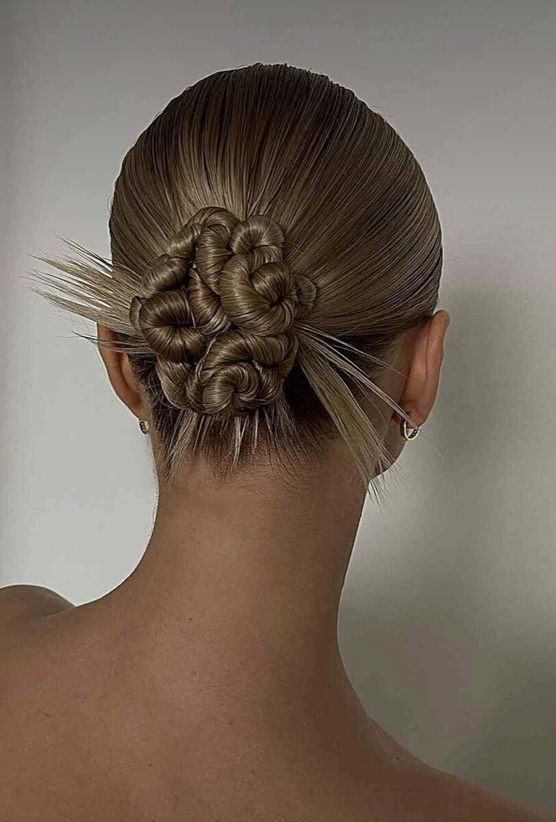 Уже активно набирают популярность «закрученные» пучки. Они заберут пальму первенства у идеально гладких.