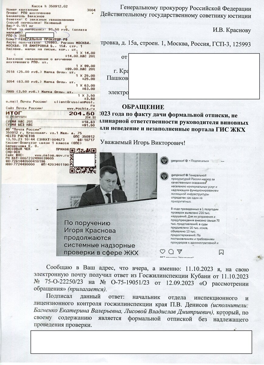 ПОВТОРНАЯ ЖАЛОБА в Генеральную прокуратуру РФ от 10.12.2023 г. по факту получения формальной отписки, не привлечения к дисциплинарной ответственности руководителя виновных лиц, которые допустили неведение и незаполнение портала ГИС ЖКХ с требованием наказать виновных лиц: начальника отдела инспекционного и лицензионного отдела А.А. Соболева (исполнитель Петренко В.Ю., Лисовой В.Д.), руководителя Госжилинспекциии Д.В. Трушкову за абсолютное отсутствие контроля за своими подчиненными, которые бездействовали. Сообщаю в Ваш адрес, что я вынужден обратиться повторно в Ваш адрес, так как на мое обращение в ГП РФ от 12.10.2023 года по факту дачи формальной отписки, не привлечения к дисциплинарной ответственности руководителя виновных лиц, которые допустили неведение и незаполнение портала ГИС ЖКХ (прилагается к настоящей жалобе!) никто не отреагировал. Ранее подтверждающие документы их виновности направлялись в Ваш адрес в полном объеме. В связи с тем, что было много фактуры, мне пришлось пе