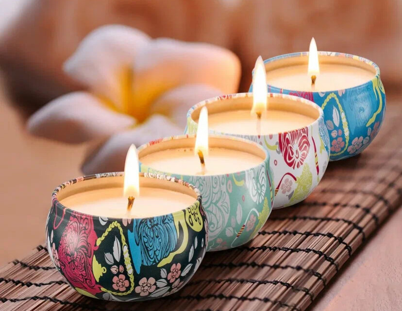 - В состав ароматических свечей входят эфирные масла или искусственные ароматизаторы, смешанные с воском, чтобы создать ароматическую атмосферу во время горения. Ароматические свечи обычно изготавливаются из смеси восков. Они бывают различных форм, от чайных подсвечников и столбиков до свечей в контейнерах, и особенно популярны для сезонных и праздничных ароматов, таких как сосна, мята перечная или тыквенные специи.