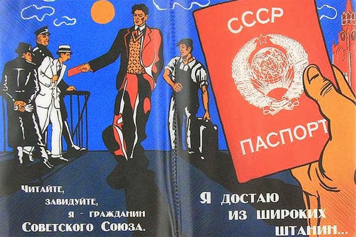Речь сейчас, конечно, пойдет не о штанах Владимира Маяковского, а о том, что носил он в этих штанах дубликатом бесценного груза, а именно о паспорте. Именно паспортом в известном стихотворении поэт меряет уважение и престиж государства: американские в руки берут словно чаевые, с почтением принимают английские, на польские же смотрят «как в афишу коза». Зато советский, молоткастый и серпастый, берут словно бомбу, как нечто опасное, но в то же время завораживающее. Звучит гордо, но как Маяковский в 1929 году предъявлял паспорт, если введены в СССР они были только в 1932 году? Паспорта появились в СССР 27 декабря 1932 года после выхода постановления «Об установлении единой паспортной системы по СССР и обязательной прописки паспортов». Правда, данная мера касалась прежде всего городских жителей (ранее в целях подтверждения личности использовались трудовые книжки). При этом паспорта имели серый цвет, на них присутствовал герб СССР и надписи на основных языках государства. Те самые серые пас