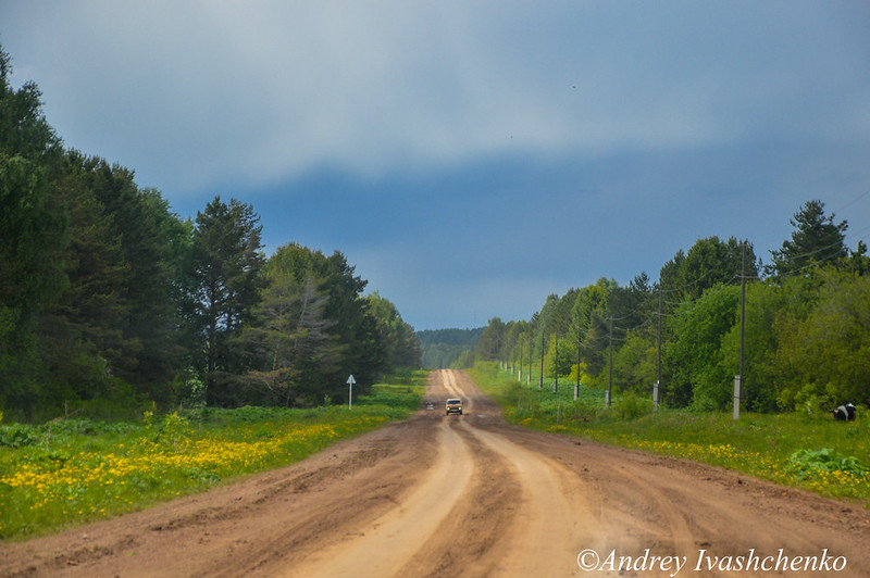 Сергей рассказал, что здесь дорогу перебегают медведи.