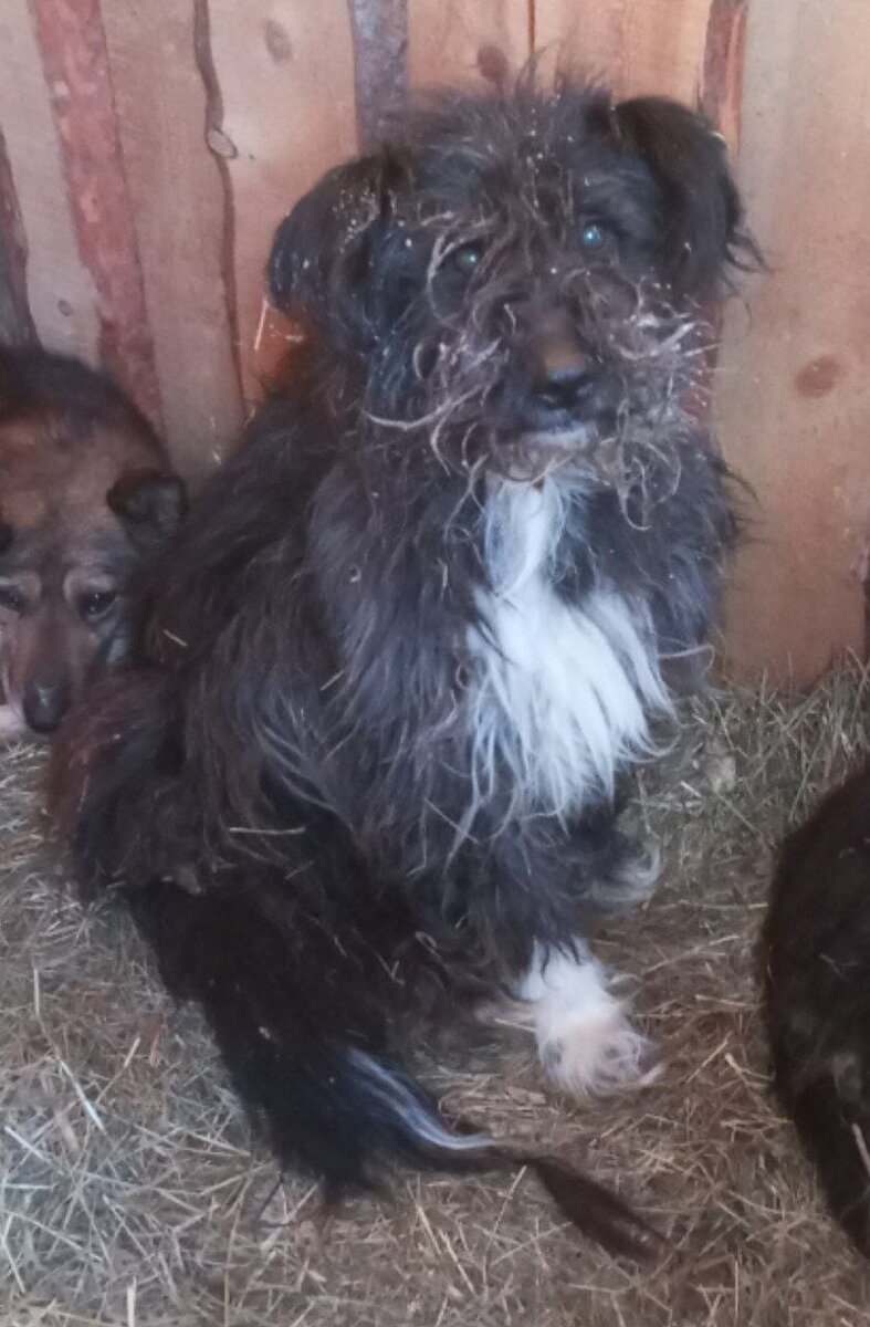 А это пёсик, которого спасли с цасс, и который сейчас живёт в приюте Возрождение, как и его 600 собратьев и которых надо откармливать и лечить, потому что они истощены до предела, их в отлове явно не кормили и даже не поили совсем!