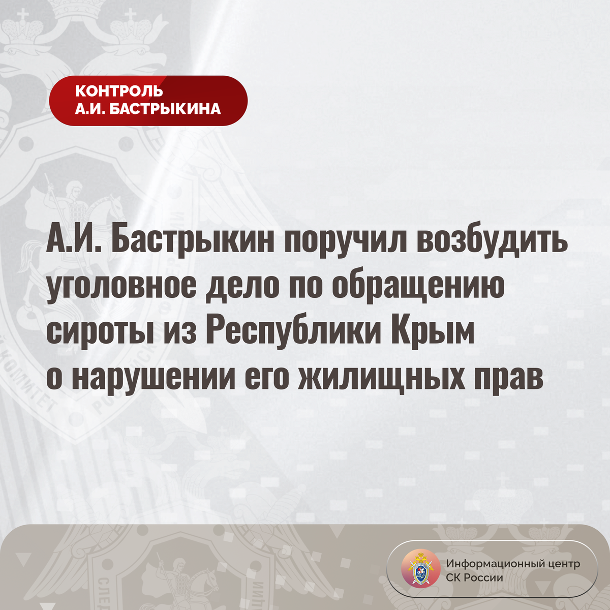 А.И. Бастрыкин поручил возбудить уголовное дело по обращению сироты из Республики Крым о нарушении его жилищных прав