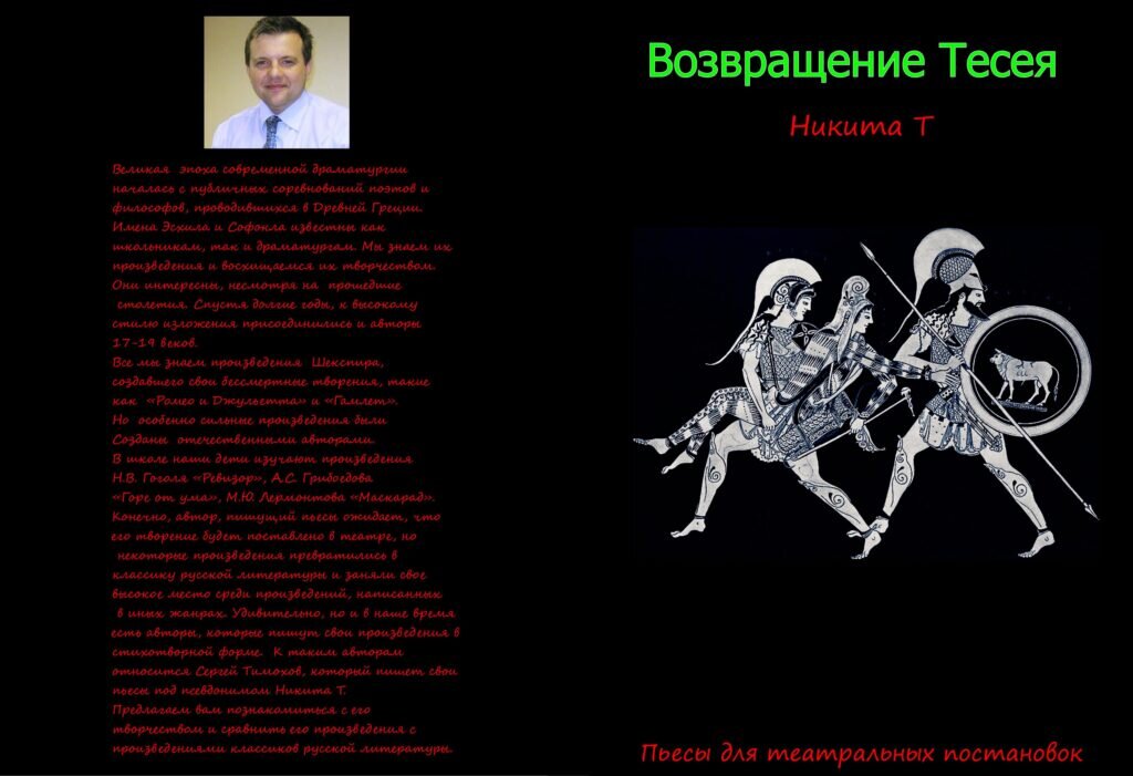 Интерес к мифологии у нас в крови. Не секрет, что античная мифология повлияла на развитие европейской культуры, наложив на неё неизгладимый отпечаток. Однако имеются мифы, которые малоизвестны широкой публике и поэтому нуждаются в популяризации. Именно такие мифы и вошли в сборник пьес Никиты Т «Возвращение Тесея». В данный сборник вошли следующие пьесы: Все эти пьесы озвучены замечательным диктором Алексеем Шульгиным. Качество озвучки можете оценить, приобретя одну из пьес – Возвращение Тесея на платформе Литрес - https://www.litres.ru/audiobook/nikita-t-31869036/vozvraschenie-teseya-69649546/ . В ближайшее время на этой платформе появятся и другие аудиокниги данной серии. Хочется обратить ваше внимание на одну из пьес, вошедшую в книгу Никиты Т «Возвращение Тесея» – «Геракл или человек, который стал Богом». Гера́кл - в древнегреческой религии и мифологии герой, сын Зевса и смертной женщины Алкмены. Зевс тщательно «подготавливал» рождение Геракла, он трижды вступал в брак со смертным