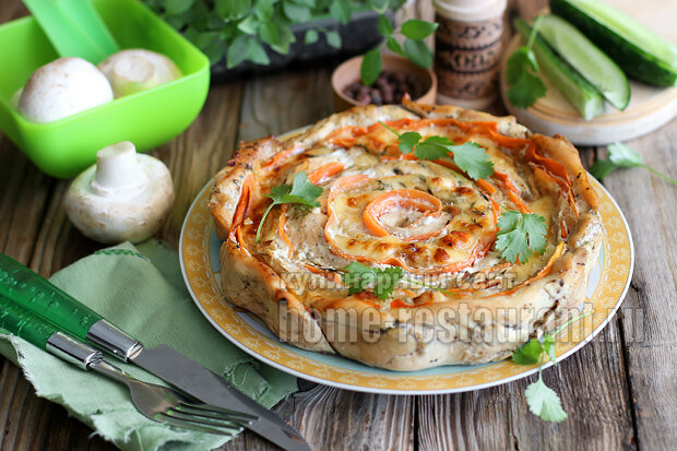 Запеканка из курицы и грибов «Цветок» готова!