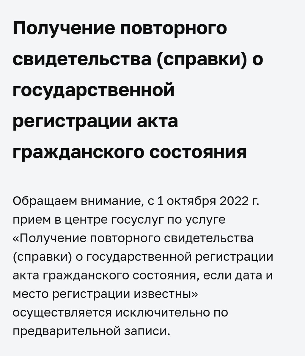 Как записаться на приём к специалисту ЗАГС в Москве. Мне нужно было было получить дубликат свидетельства о смерти мамы. Это оказалось непросто. В МФЦ посылают на мос.ру. с трудом нашла нужную ссылку. Делюсь. https://www.mos.ru/pgu/ru/app/oiv/booking/#step_2 Если вы прорвались через десяток вводов паролей и защит, то Нужно выбрать оформление основных документов- документы ЗАГС. Не забудьте свой паспорт и свое свидетельство о рождении.