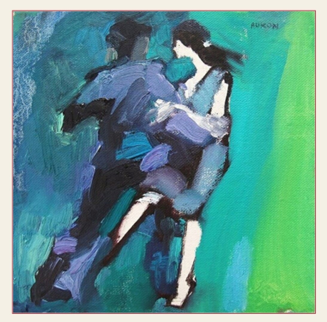 Из воспоминаний художницы: "Я заворожена, когда смотрю танцоров танго. Такой красивый и креативный танец! Музыка танго переносит меня в другую реальность. Меня, как художника заинтриговали сложные движения и диалог танцоров. Я не художник-реалист и не заинтересован в копировании натуры. Фотограф лучше справляется с этим. Я в постоянном поиске красоты и движения в живописи. Мои картины просто обязаны пульсировать жизнью! Мои инструменты - выразительные линии и сложные цветовые сочетания. Самое сложное - выйти из себя и позволить волшебству случиться и не испортить творческий процесс."
