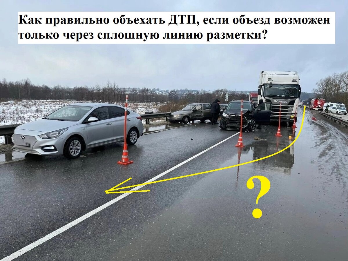 Автоюрист пояснил, как правильно объехать ДТП, если его объезд возможен через сплошную линию разметки