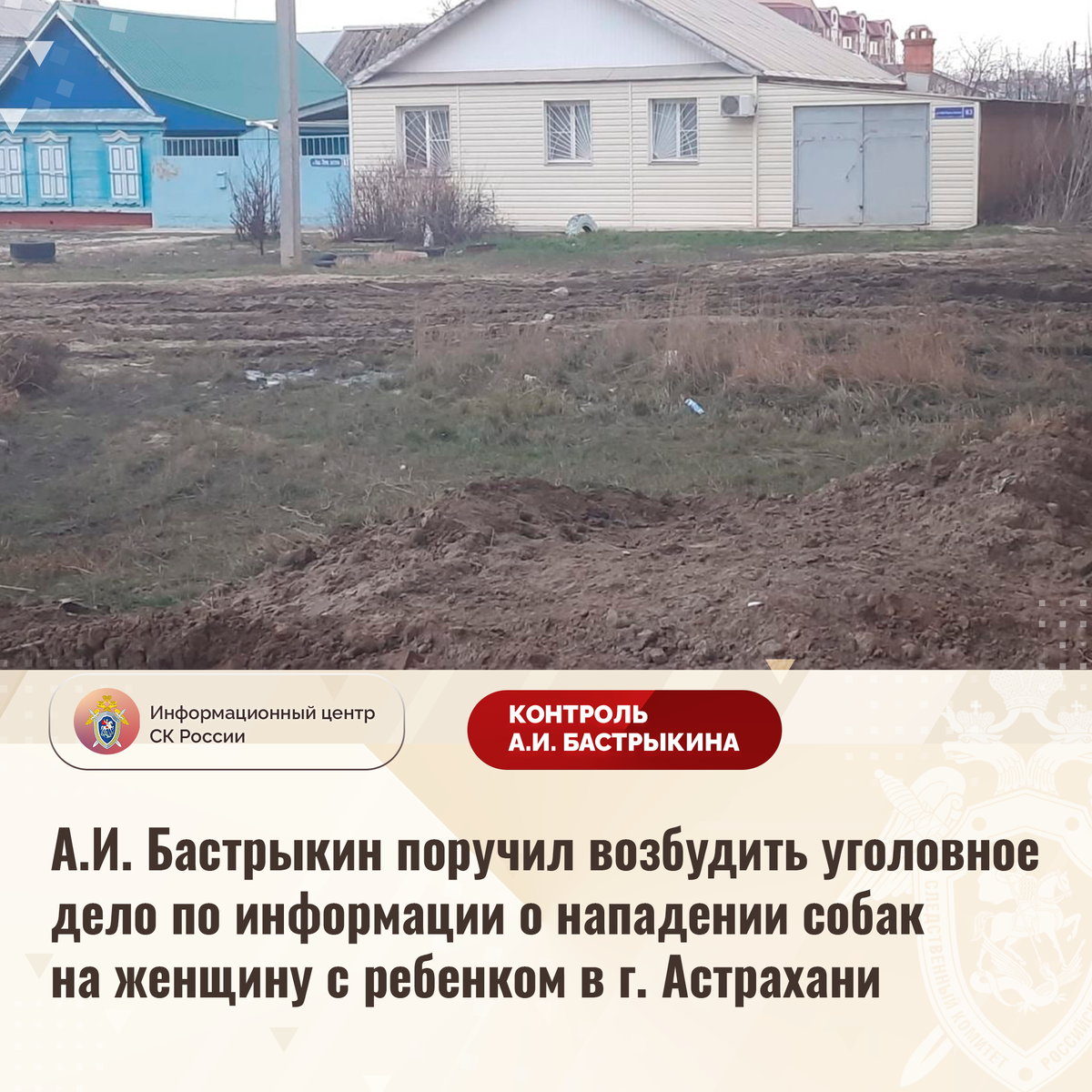Внимание Председателя СК России А.И. Бастрыкина обращено на публикации в СМИ и социальной сети о том, что 8 января текущего года в городе Астрахани бродячие собаки напали на местную жительницу с годовалым ребенком, находившимся в детской коляске. Бездомных животных отогнал супруг женщины, оперативно прибывший на место инцидента.