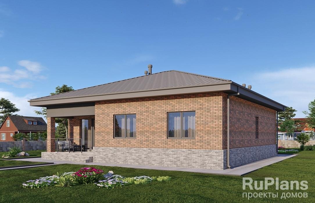 Для заказа проекта частного жилого дома из Донецкой Народной Республики (ДНР) в России, вы можете обратиться к архитектурным и строительным фирмам, специализирующимся на проектировании и строительстве загородных, жилых частных домов домов. После выбора фирмы, вам потребуется связаться с нами для обсуждения ваших потребностей и пожеланий относительно проекта дома. Проект одноэтажного дома с террасой, тремя спальнями и камином в гостиной с размерами здания 12,37х13,17 м. Фундамент - монолитная ж/б плита под всей площадью дома (мелкозаглубленная). Наружные стены здания - газобетонный блок с отделкой облицовочным кирпичом. Внутренние стены здания - газобетонный блок. Перегородки здания - кирпич пустотелый. Пол этажа - по монолитной ж/б плите. Межэтажное перекрытие - деревянные балки с теплошумоизоляцией в межбалочном пространстве. Крыша - четырехскатная. Кровля - металлочерепица. Окна — металлопластиковые. ДОСТАВКА БЕСПЛАТНАЯ по всей РОССИИ
