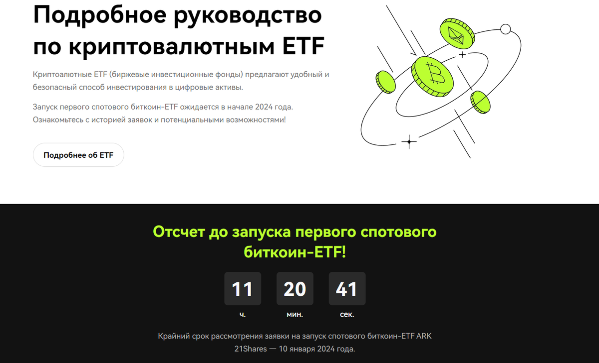 OKEX запустил отсчет до запуска спотового биткоин-ETF!