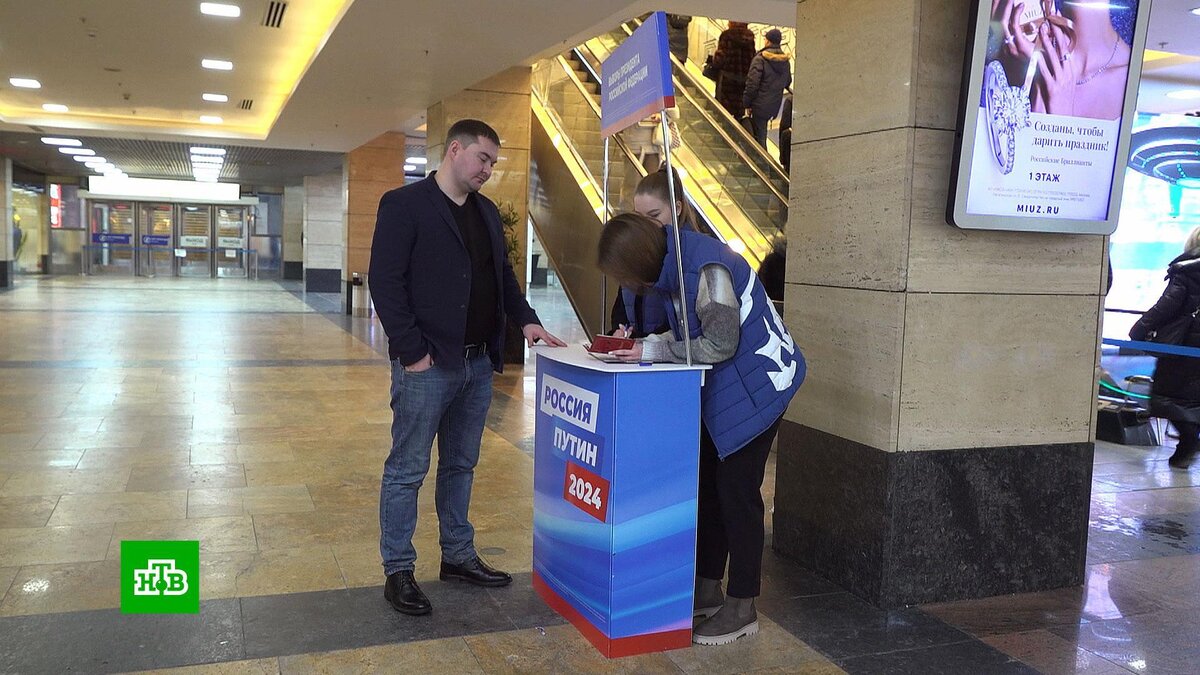 [ Смотреть видео на сайте НТВ ] В Москве продолжается сбор подписей в поддержку кандидата в президенты Владимира Путина. В столице продолжают собирать подписи в поддержку кандидатуры Владимира Путина на президентских выборах. Действующий глава государства участвует в выборах в качестве самовыдвиженца. Чтобы поддержать Путина, достаточно прийти в одну из точек сбора. При себе нужно иметь только паспорт. В столице работает порядка 50 площадок в торговых центрах и общественных пространствах. Каждый день там находятся волонтеры, которые помогают правильно заполнить документы. До конца января самовыдвиженцы обязаны передать в ЦИК не менее 300 тысяч подписей. Решение представителя непарламентских партий баллотироваться на пост главы государства должны поддержать как минимум 100 тысяч россиян. По данным Центризбиркома, на должность президента претендуют 11 человек. Выборы пройдут в марте этого года. Впервые они станут трехдневными. Отдать свой голос можно будет с 15 по 17 марта. [ Смотреть ви