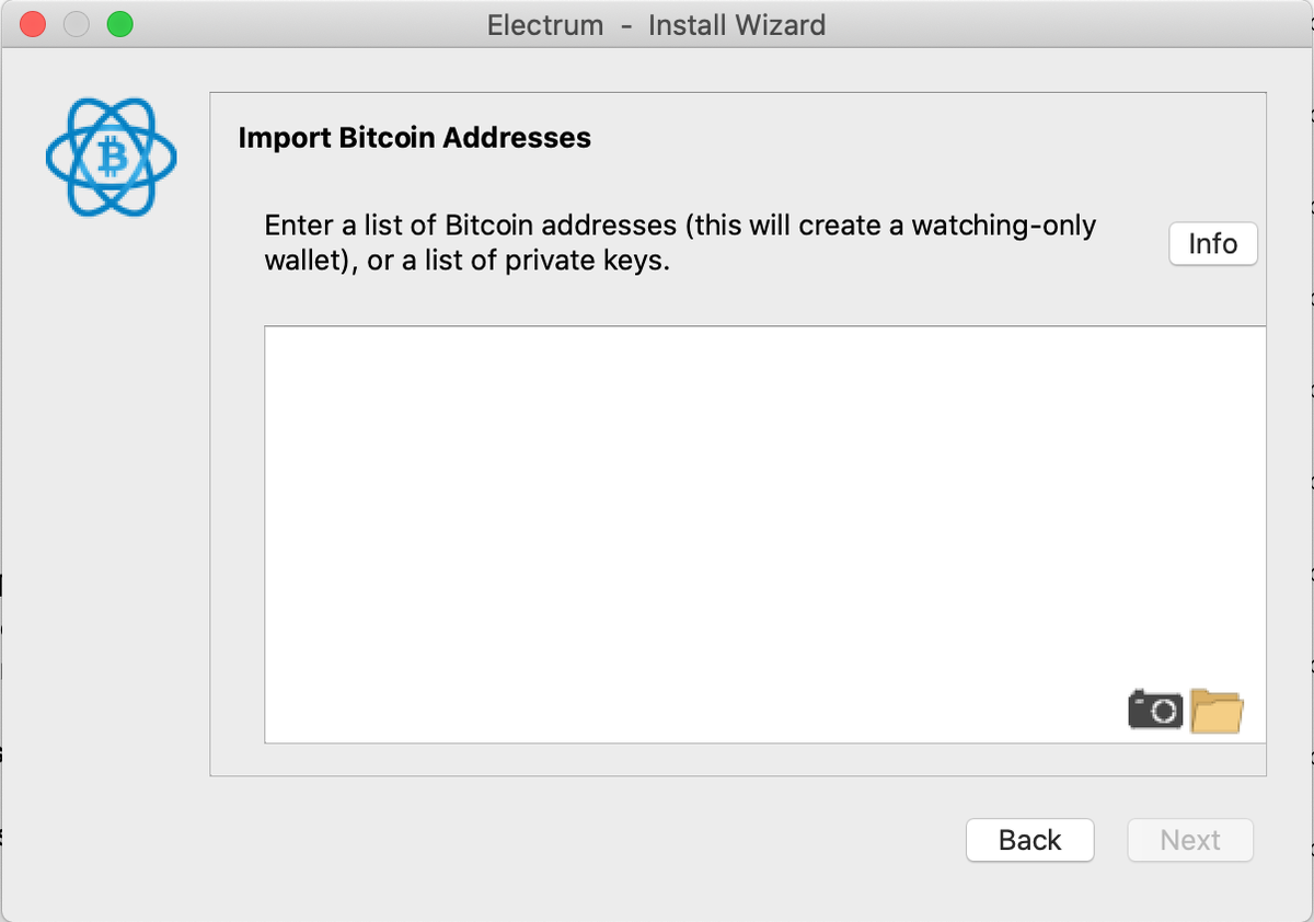 С этой информацией я не смог запустить свое приложение Electrum. Я установил Electrum версии 4.x. После запуска я сначала выбрал создать новый кошелек, указал имя, а затем выбрал Импортировать биткоин-адреса или приватные ключи. В какой-то момент процесса мне также пришлось выбрать надежный пароль, если я правильно помню.