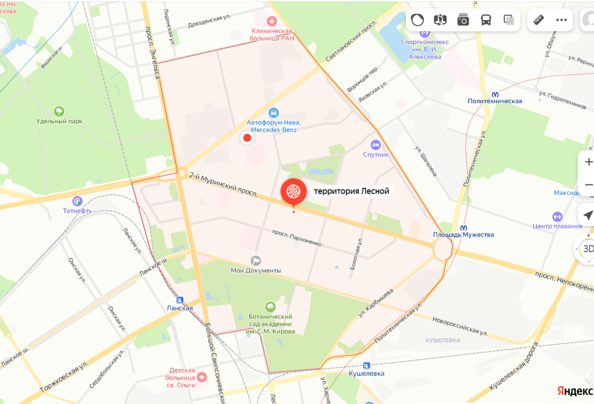 Около Лесного института проходит ещё один проспект, сейчас называемый 1-м Муринским.