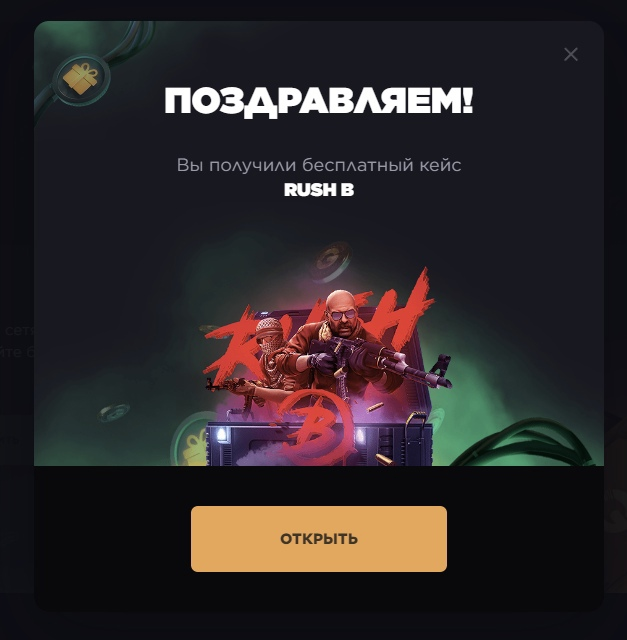 3. Открыть кейс за 0G, выпадет рандомный скин ( ссылка если вы нечаянно закрыли окно https://ggdrop.in/case/rus-b ).