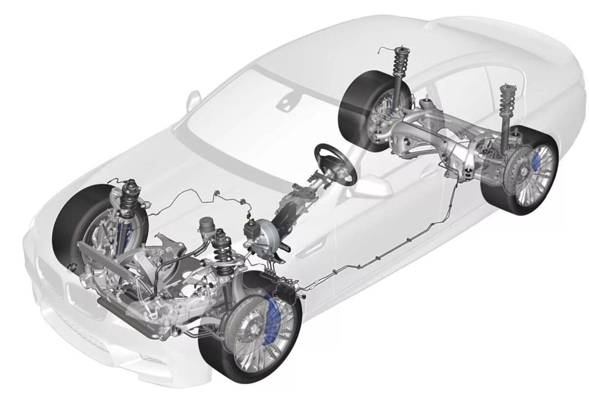 Ходовая часть автомобиля — это комплекс элементов, который обеспечивает подвижность и управляемость автомобиля на дороге. Устройство ходовой части 1. Кузов или рама. Это основная несущая конструкция авто, к которой крепятся все остальные элементы ходовой части. Кузов может быть самонесущим, то есть выполнять функцию рамы, или же устанавливаться на отдельную раму. У внедорожников, как правило, ходовая крепится к раме. 2. Подвеска Подвеска влияет на устойчивость, управляемость и тормозные свойства автомобиля. Смягчает нагрузки от неровностей дороги и уменьшает их воздействие на кузов и пассажиров. 3. Мосты. Предназначены для соединения двух ведущих колёс. 4. Колёса. Опорные элементы ходовой части. Состоят из дисков и шин. Диск служит для крепления колеса к ступице и передачи крутящего момента от двигателя или тормозного механизма. Шина обеспечивает сцепление колеса с дорогой и амортизацию неровностей. Колеса могут быть управляемыми или неуправляемыми, ведущими или ведомыми, зависимо от
