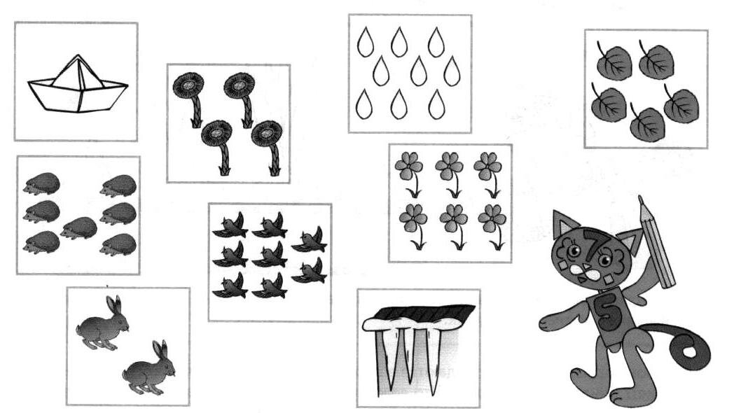 Задание может быть дифференцировано для младшей подгруппы (провести стрелки от квадрата с одним изображением до квадрата с пятью изображениями).
