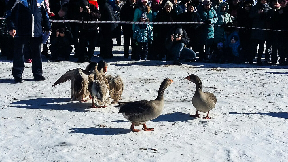 Ежегодно в марте в городе Павлово проходит необычное мероприятие — гусиные бои. На состязания съезжаются участники со всей Нижегородской области и даже из других регионов страны. У птиц все как у людей — самцы бьются за внимание самок, а те, в свою очередь, их активно подбадривают. Побеждает сильнейший, тот, кто смог обратить противника в бегство. Бойцовые гуси — это специальная порода, которую разводят не для еды, как остальных. Они крепче и выносливее. К ним хозяева относятся как к собственным детям — ухаживают, кормят вкусняшками, всячески балуют. На «ринг» выходят гуси одной «весовой» категории, в зависимости от возраста и физической подготовки. Специального обучения им не требуется, поскольку дух состязания у этих птиц заложен генетически. Интересный факт: бойцовый гусь получает имя только после того, как одержит свою первую победу. Как правило, птицы начинают участвовать в боях со второго года жизни. Живут они довольно долго — до 15 лет, а в боях участвуют где-то до 10 лет, после