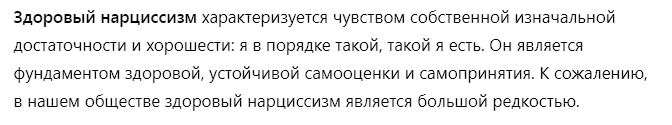 Но, пойдем от простого к сложному. Прежде всего жизнь с нарциссом - это психическое повреждение у ребенка, которое в периоде пубертата может манифестировать в различные психические расстройства, спектр которых может быть весьма широк и непредсказуем. Некоторые признаки повреждения: