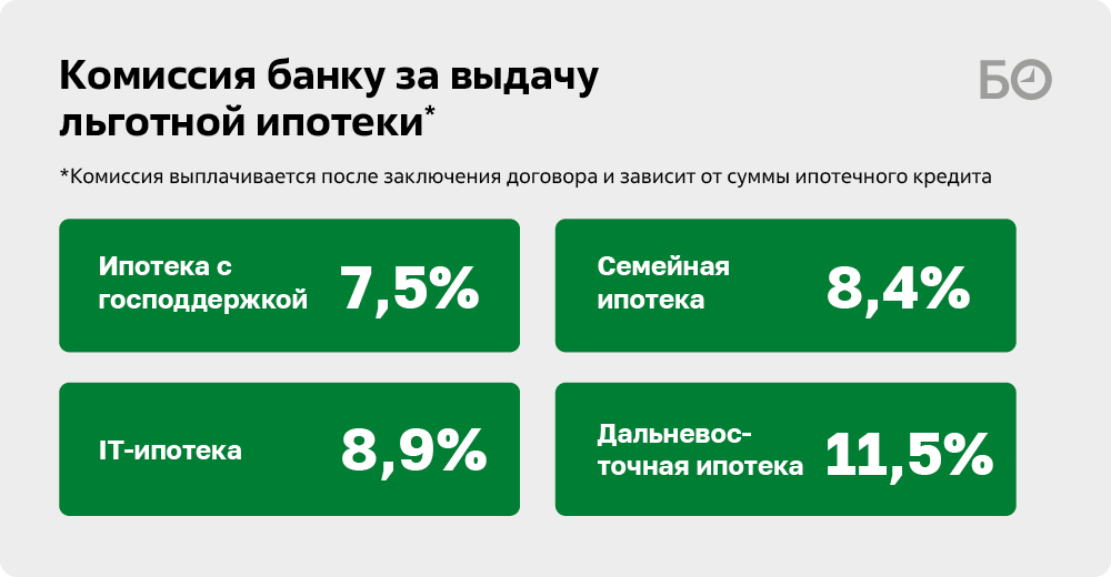 - ипотека с господдержкой со ставкой 8% — выплачивается комиссия в 7,5%;