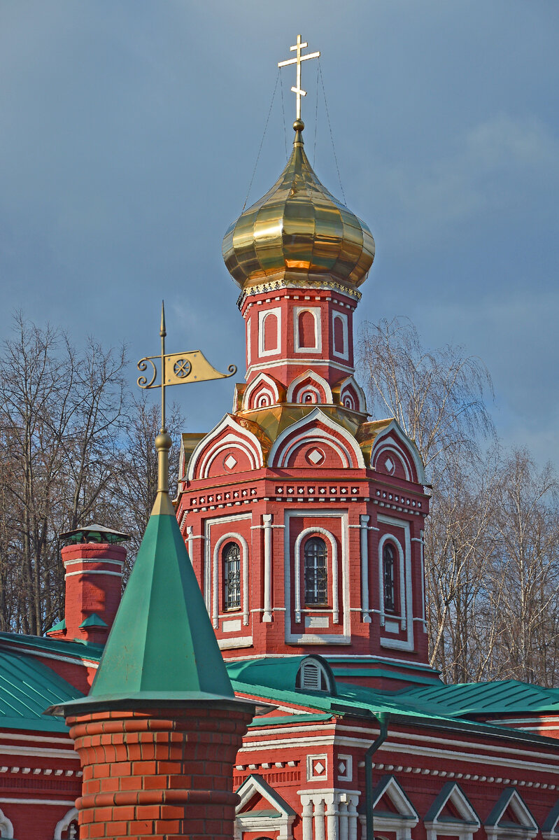 Уютный домовый храм ХVII века типа "восьмерик на четверике" (храм на тромпах, прототип храма "на парусах") с гранёной апсидой, узким притвором и луковичной главой на крупном барабане при перестройке в начале ХХ века не был полностью разобран. Стены четверика получили арочные пролёты. Верх подвергся стилевой переделке в духе новых пристроек, появившихся вокруг здания с трёх сторон. К обширной трапезной пристроили с запада богато декорированную паперть, увенчанную восьмигранником звона под кирпичным шатром с несколькими рядами выразительных "слухов". Псевдорусский стиль, пойдя по пути эклектизма, приобрёл некоторые стилевые особенности, ставшие характерными для всего направления. В частности, речь идёт об увлечении нарядным и запоминающимся внешним декором, повторяющим на новый лад мотивы русского зодчества ХVII века. Нескольких типов беленьких наличников, пилястры, пояса, декоративные балясины сложной конфигурации, пучки угловых колонок, кокошники и ширинки объёмно выделяются на фоне красных кирпичных стен. Кованые оконные решётки с оригинальным рисунком гармонично дополняют облик здания храма. Стены четверика с тремя кокошниками богато декорированы различными элементами, в том числе ложными балясинами. Окна, забранные фигурными решётками, обрамлены фигурными наличниками в виде колонок различной формы. Окна трапезной также обрамлены фигурными наличниками в виде колонок, которые завершаются фронтонами. Пристроенная в ходе реконструкции начала ХХ века богато декорированная паперть - вместительная. Вход в храм украшает портал из белых арочных поясов, один из них - с килевидным завершением. Надвратная икона Божией Матери "Знамение" выполнена в технике энкаустики (когда краски замешиваются на расплавленном воске).