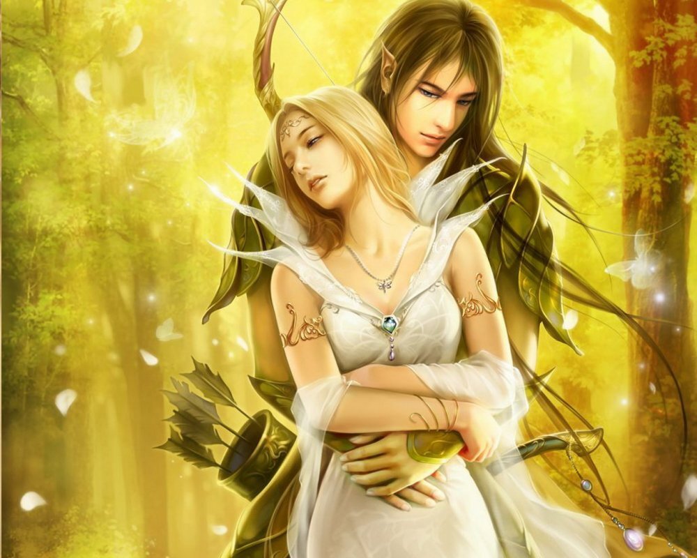 Эльфийка посмотрела на него, вздохнула и тоже наконец легла. Стоило девушке лечь в постель, как она тут же оказалась в объятиях молодого человека, который, заглянув ей в глаза, сказал: