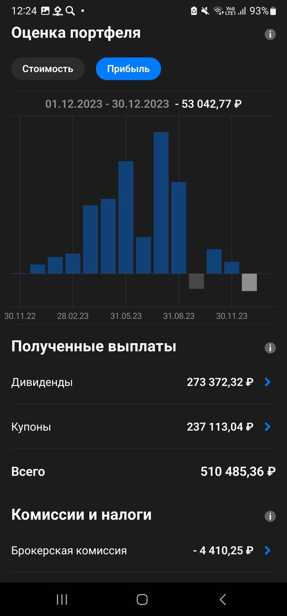 Добрый день, уважаемые читатели. Новый год к нам спешит. 🥳🥳🥳🍾🍾🍾 Постараюсь на каникулах отложить телефон и побыть с родными и близкими. Чего и вам желаю! Решил зафиксировать результаты на конец года, чтобы потом сравнить через год. По ссылке можете посмотреть, с чего стартовал портфель около года назад, когда был выведен в публичное пространство. Стартовали с 2 млн дедушкиных. В рамках года отец детей добавил ещё 3 млн рублей. Итого Внесено 5 млн. Пополнений пока не ожидается, выводов тоже не будет. Проехали год. Сейчас сумма получилась почти 6.8 млн (не дотянулись). Последние 4 месяца доходность портфеля стояла на месте. Несмотря на это, год был очень благодатный для инвесторов в Российский рынок и портфель воспользовался этим. Доходность по портфелю (в районе 43%). Получили даже плюс по долларам и евро, что очень неплохо. Если бы всё вкладывали в акции, доходность была бы выше, но для хозяина счета важнее безопасность, поэтому облигации были есть и будут в портфеле