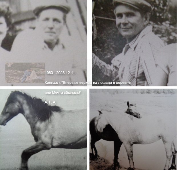 "Урал" быстро скрылся за лесным поворотом, где должны были уже начинаться заборы крайних дворов - начало деревни. Но, как только хозяин скрылся, моя красавица всё -таки двинулась с места (домой всем хочется), пошла "своей дорогой" спокойным шагом, будто гуляет сама по себе. Навязали какую-то легкую девушку (конь как личный транспорт в деревнях, признают хозяина и его семью, верные, как собаки). А мне-то ой как хочется немного скорости. Ссовсем чуть-чуть, на большее не рассчитываю, я - не наездница-джигитка! Благодаря этой замечательной лошади, которая решила оставить память о себе на бумаге сейчас, решила посмотреть, какое слово применить, на слуху "аллюр", "галоп", "иноходь". А, оказывается, есть и обычный "шаг" ("Аллю́ры (устаревшее) (фр. allure «походка, бег») — виды походки лошади: шаг, рысь, галоп и иноходь",и, как в добром отзыве добавил Геннадий Дергачев (спасибо вам) 30.12.2023 08:42:24 Отзыв на произведение - положительный: "Есть ещё трот - недоделанная рысь, так сказать :)".
