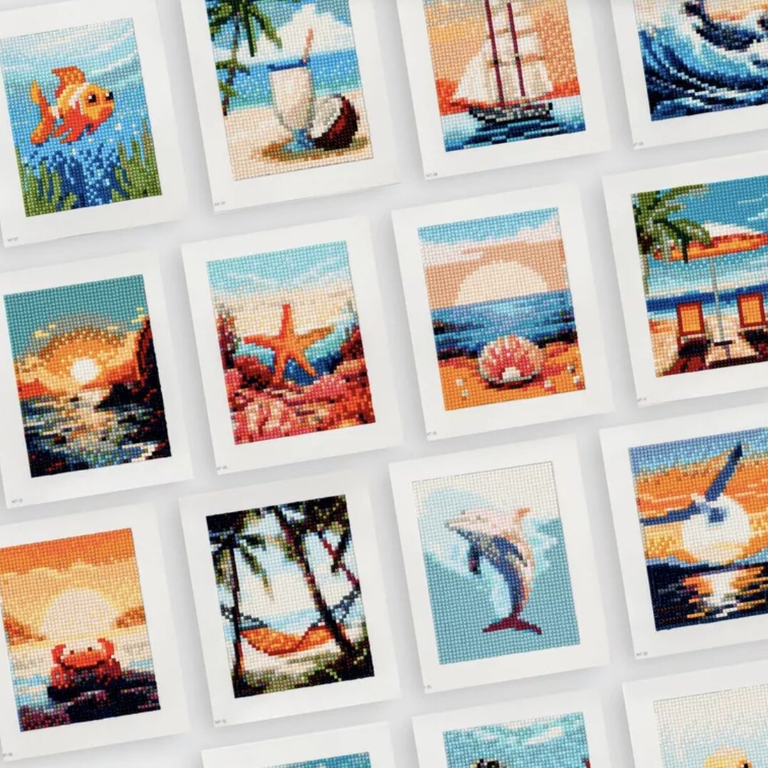 Для всех любителей алмазной мозаики появилась новинка - Mini Gems. Это наборы миниатюрных сюжетов на разные тематики, которые выкладываются стразами. Они удивят не только новичков, но и тех, кто собирает картину за картиной. Рассказываем подробнее. Алмазная мозаика - это увлекательный вид творчества, который затягивает и вводит в состояние умиротворения и релакса. Акриловые стразы приклеиваются к холсту, выстраиваясь рядами в настоящую картину. Сборка большой мозаики размером 40x50 см занимает достаточно много времени (это зависит от скорости работы), и результат виден не сразу. Мини-мозаика – это наборы холстов без подрамника небольшого размера на разные тематики, из которых можно собрать коллекцию и украсить ими интерьер, например, поставить в раму, или сделать открытку ручной работы. Собрать такую мозаику можно за один вечер и сразу насладиться результатом. Уверены, даже дети будут в восторге! Комплекты алмазной мозаики представляют собой набор из 8-16 маленьких холстов с разными и