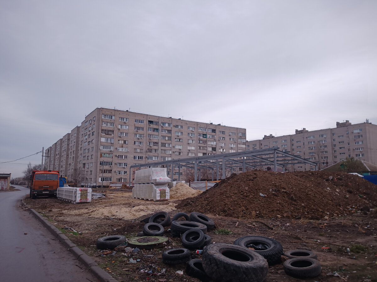 Сегодня на окраине Краснооктябрьского района произошло одно событие, о котором в новостях вряд ли будут рассказывать. В посёлке Вишнёвая балка открылся магазин сети Чижик. Не скажу, что это прям знаменательное событие, т.к. различные магазины в нашем городе открываются и закрываются частенько. Однако нашу Вишнёвку до сей поры они как-то обходили стороной. Из крупных магазинов у нас есть только Магнит, который открылся три года назад. И вот по осени на пустыре на улице Верхоянской началось какое-то строительство. Поначалу я думал, что строят дом. Потом, когда увидел размеры фундамента, понял, что это не дом, а что-то другое. Но что именно? Вариант спортзала отпадает, т.к. он построен буквально по соседству, но пока что не открыт. Магазин? Скорее всего да, но какой? Ладно, подумал я, поживём-увидим. А стройка тем временем продолжалась. Её фотографий у меня не очень много, она чаще мелькала у меня на видео, чем в объективе фотоаппарата. Вот так строительство магазина выглядело в конце ноя