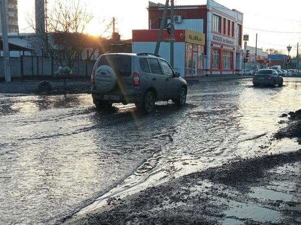 По словам местных жителей, аварийный участок находится на пересечении улиц Авиационной и Комарова. Люди утверждают, что дорогу периодически затапливает после дождя. На снимках видно, что машины буквально «проплывают» по проезжей части.