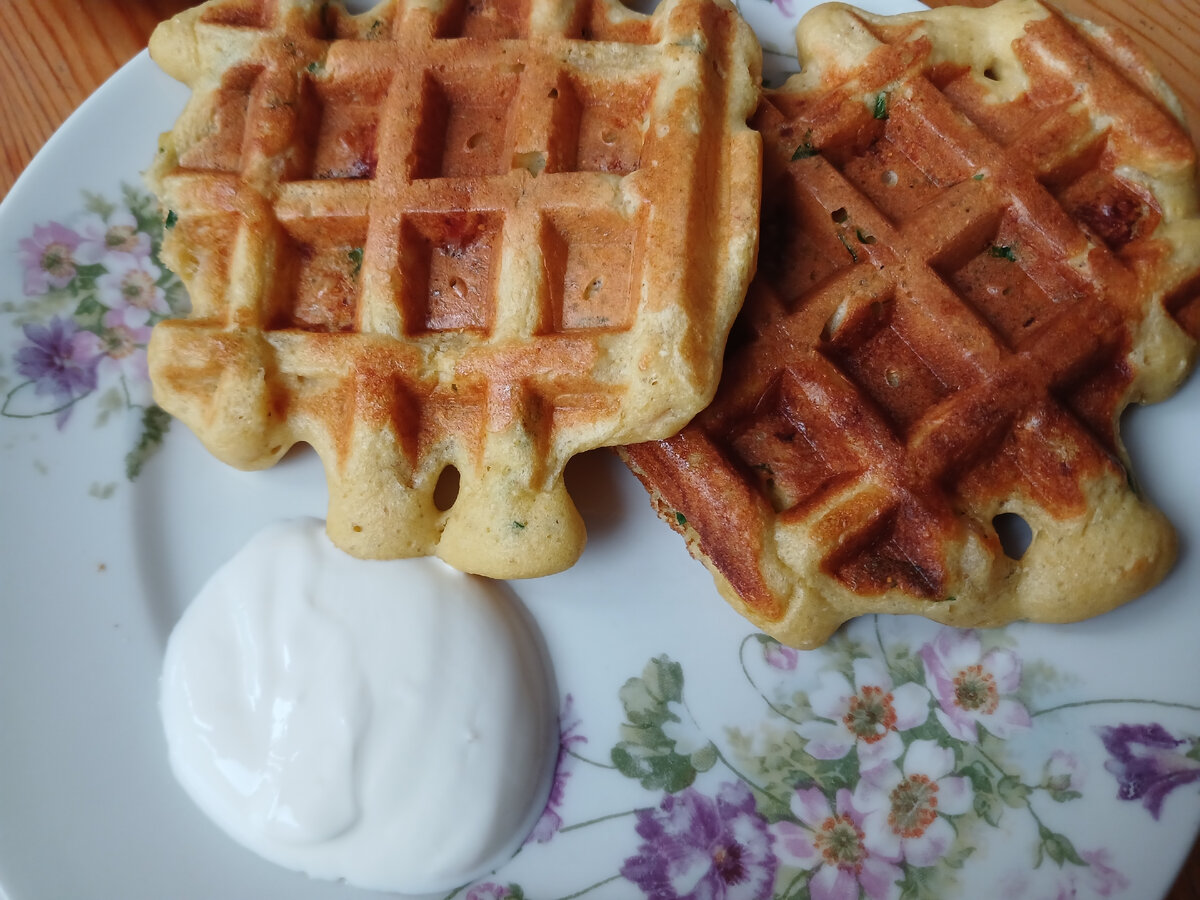 Сытные белковые пп-вафли - для завтрака, на перекус и даже вместо хлеба Для них нужна нутовая мука (да, на простой тоже можно сделать, но теряется приставка пп и содержание белка). Надеюсь, вы ее уже закупили после рецепта нутоблина 🤗 100 г кефира 100 г йогурта 1 яйцо щепотка соли 130 г нутовой муки 1 чл разрыхлителя горсть бекона горсть любой зелени (хорошо сюда подойдет зеленый лук, у меня была петрушка) 1. зелень и бекон мелко порезать 2. взболтать вилкой яйцо, кефир и йогурт, добавить соль и разрыхлитель 3. насыпать муку. Прямо на муку выложить наполнители - бекон и зелень. Чуть перемешать с мукой, чтобы не оседали на дно. И перемешать теперь всю массу целиком. Нутовой муке нужно дать постоять минут 30, чтобы набухла. Если времени нет, то возьмите 100 г нутовой муки и 30 г пшеничной. Тогда вафли можно печь сразу. 4. сбрызнуть панели для вафель маслом. Дальше за счет бекона они и так будут жирненькие. Перекладывать горячие вафли лучше всего на решетку для остывания. Вместо бек