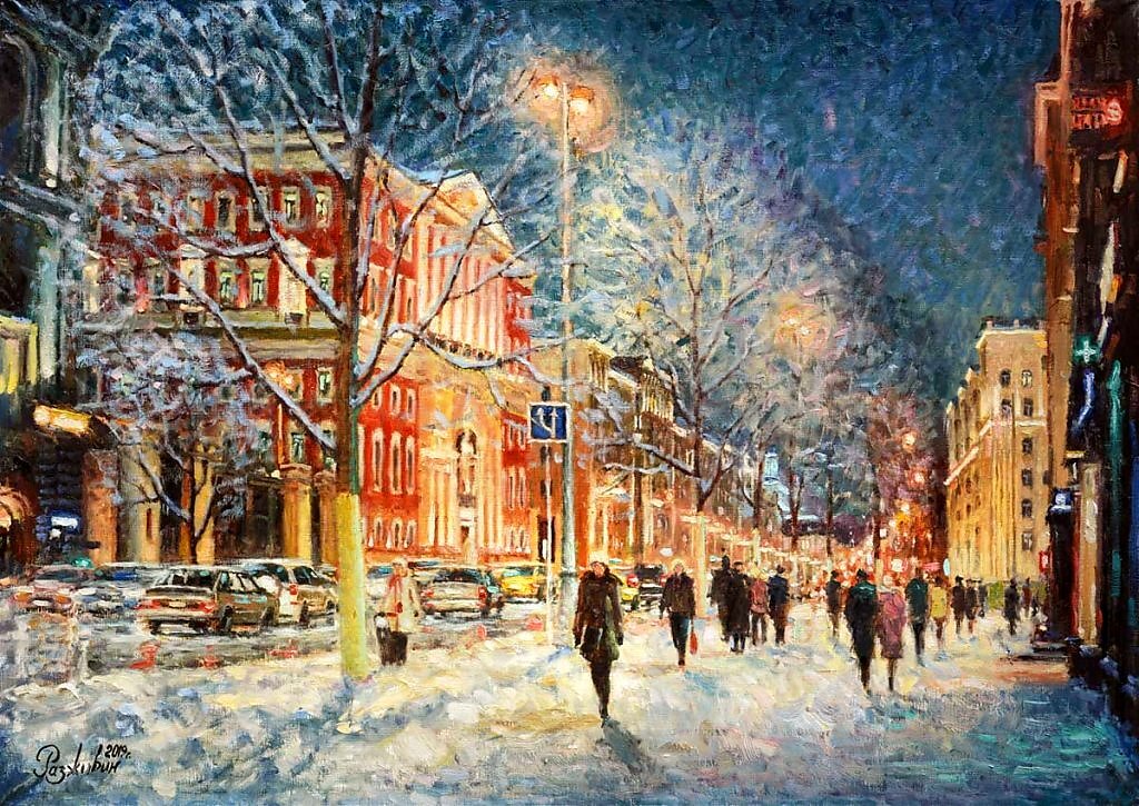 В сумерках над городом повисла черная туча, а через несколько минут все погрузилось во тьму. И только светящиеся окна домов, уличное освещение, яркие витрины магазинов и свет фар проезжающих машин разбавляли эту черную краску ночи.