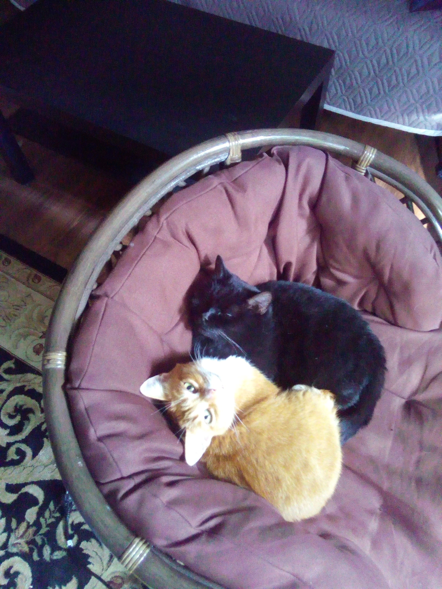 Многие знают меня как любителя собак, но у нас в доме всегда жили и кошки. Сегодня у нас их две. Рыжая Дуся сама пришла к нам лет 8-9 назад, а черную Азу мы забрали из ветклиники, куда ее кто-то подбросил в тяжелом состоянии. У нее во время родов застрял мертвый котенок, и ей срочно нужна была операция. Наш знакомый ветеринар прооперировал ее и тем самым спас ей жизнь, а когда мы при посещении клиники увидели ее, то решили забрать ее домой. Так и живет у нас с Дусей на втором этаже отдельно от собак лет 5-6, а этот милосердный врач из клиники "Кот Матроскин" в Подольске спас уже немало подброшенных кошек, и у них в клинике всегда проживают 2-3 спасенные им кошки...