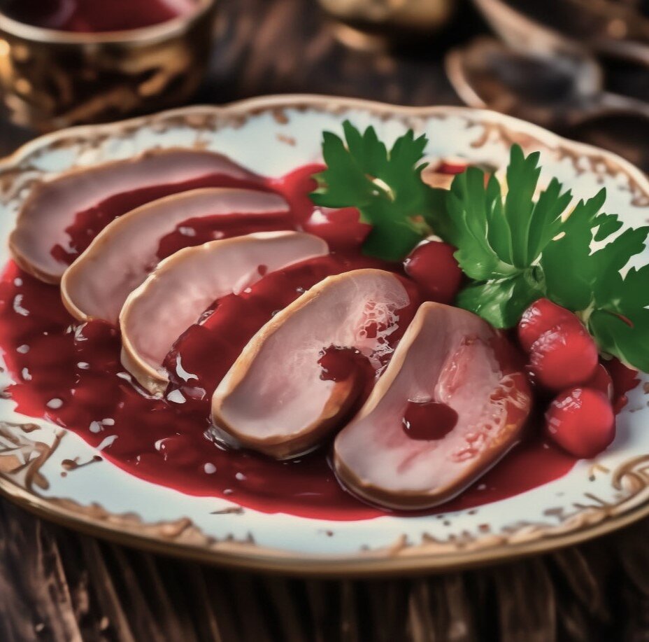 Очень вкусное блюдо! Простое в приготовление. Ингредиенты: 500гр свиного языка 1 морковь 1 луковица 2 зубчика чеснока 4 веточки петрушки 6 горошин душистого перца 1ст ложка соли Соус: 200гр красной смородины (можно замороженной) 150мл бульона 40гр сливочного масла 1ч ложка муки 1ч ложка сахара соль по вкусу В сотейнике разогреть сливочное масло, всыпать муку, обжарить помешивая 1 -2 минуты. Тонкой струйкой влить горячий бульон, помешивая и разбивая комочки. Всыпать ягоды, соль, сахар. Довести до кипения, снять с огня. Приготовление: Язык промыть. Вскипятить воду, положить туда язык, целую луковицу, морковь, веточки петрушки, чеснок. Всыпать душистый перец и соль. Довести до кипения и варить язык 1,5-2 часа. Готовый язык переложить в миску с холодной водой и оставить на 5-7 минут. Затем язык очистить. Нарезать язык ломтиками и подавать с соусом.