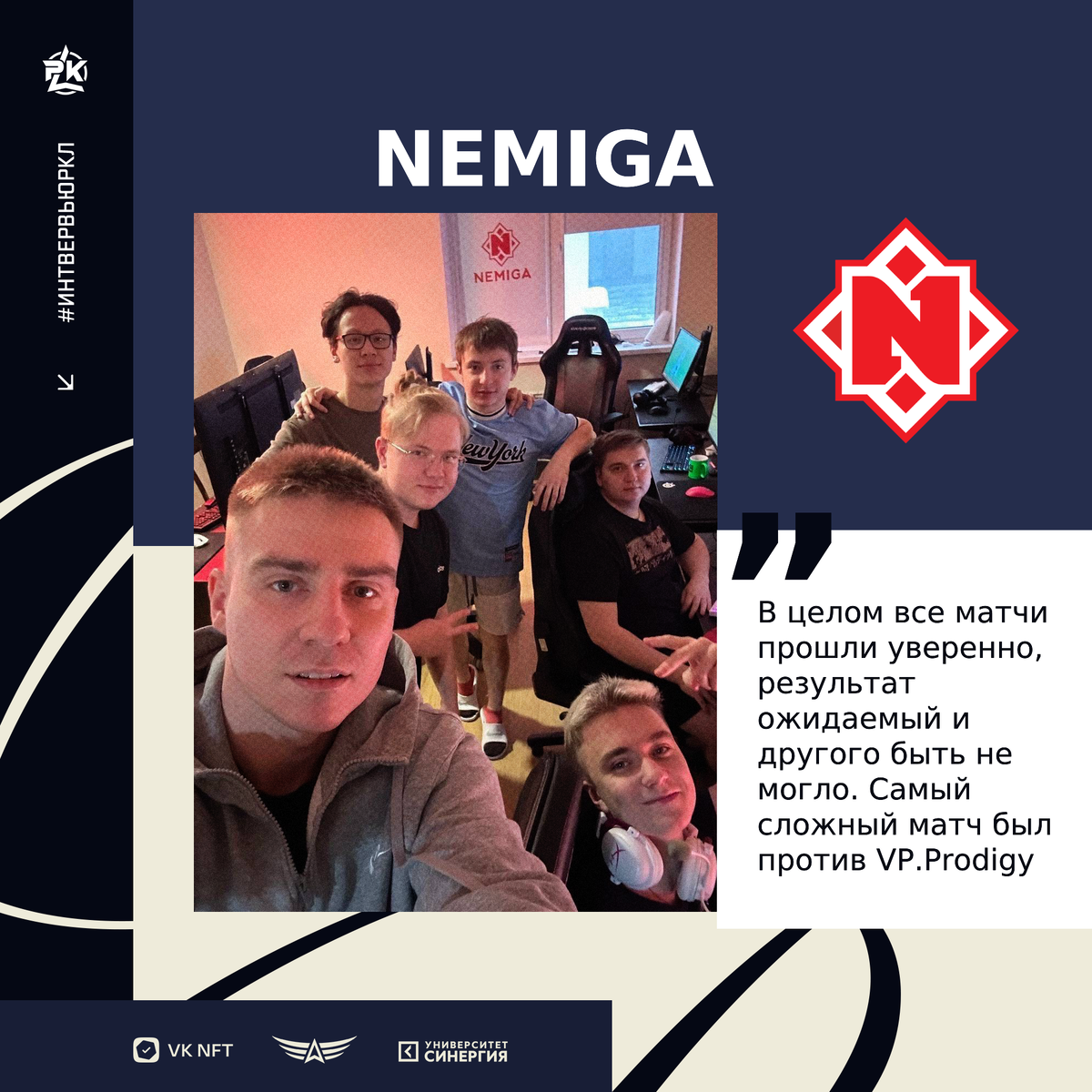 Продолжаем знакомиться с командами! Сегодня мы задали несколько вопросов игрокам Nemiga. Как образовалась ваша команда и в каком году? Почему «Nemiga»? Антон "boX" Бурко (тренер): Однажды лучшие умы Беларуси собрались в одном месте... Александр "1eeR" Нагорный: Если не ошибаюсь, то летом 2017 года. Тогда я еще не увлекался кс'ом и не следил за киберспортивной деятельностью. Название «Nemiga» определенно связано с речкой, которая протекает в Беларуси. Как вы начали играть в CS? Какую роль в этом сыграло окружение? Антон "boX" Бурко: В году 2006 в компьютерном клубе. C одноклассниками решили выяснить, кто чего стоит. Александр "1eeR" Нагорный: У меня нет стандартной истории, как у большинства. Мол, контру показал старший брат или же отец. Меня с ней познакомили друзья в школе. Сначала это было просто для веселья и удовольствия после школы, серьезно заняться этой деятельностью я решил в 20 году. Бексултан "khan" Оспан: Первый раз я познакомился с CS еще в далеком 2009, это был CS 1.6. Мн