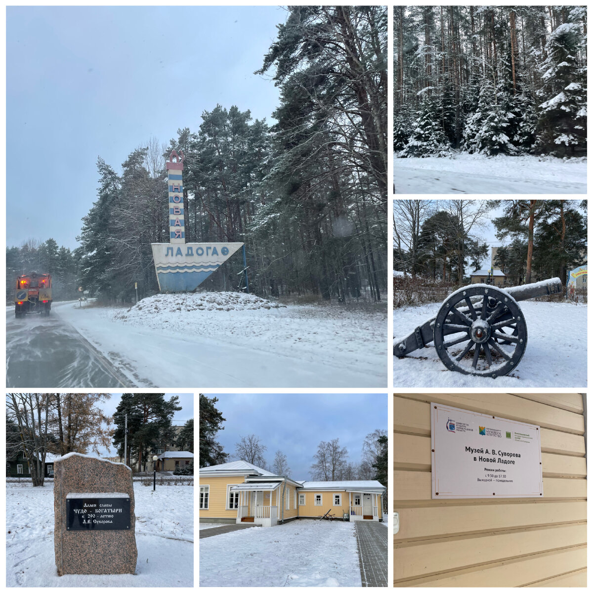 Вы знали что великий Суворов закончил формирование своего полка в Новой Ладоге.? Я к сожалению не знала. А что в этом городе недалеко от Петербурга есть современный музей Суворова? Я тоже узнала случайно. В Новой Ладоге я оказалась во время моей командировки по области. Началась командировка около 7 утра. Выехала я еще до утренних пробок. Зима потихонечку вступила в свои права и вдоль трассы меня встретил красивый северный заснеженный хвойный лес. Любуясь видами востока области я примерно за час добралась до Новой Ладоги, красивого города на берегу Волхова. Сделав служебные дела я задумалась об обеде. Мое внимание привлекло кафе «Городской парк» с хорошим меню и недорогими бизнес-ланчами. Еда действительно оказалась довольно таки вкусной. Подкрепившись и посмотрев в окно я увидела небольшой сквер с аккуратным деревянным зданием в глубине. Оставив машину на парковке у кафе я перешла дорогу и подошла и к скверу. При входе я увидела стилизованную арку сообщающую всем, что это скв