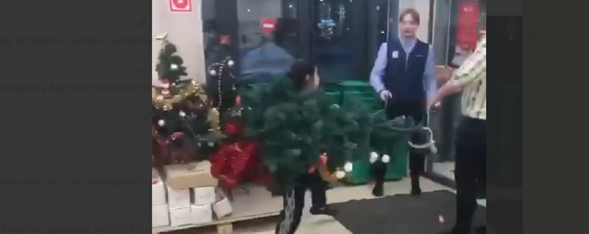 В Туле девушка с новогодней елкой напала на охранников и попала на видео, выломав двери хулиганка и ее сообщницы покинули магазин