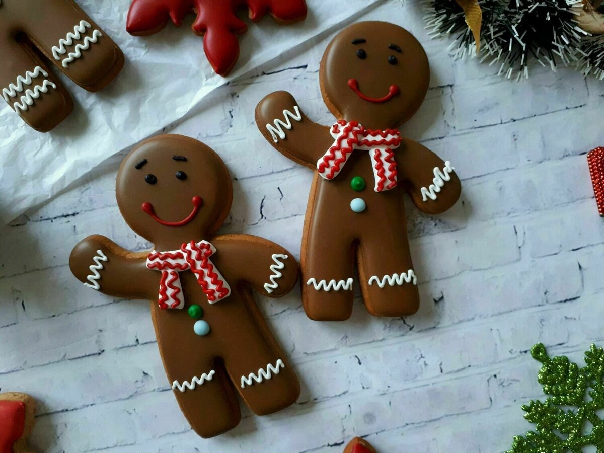 Всем доброго времени суток.Готовим красивые,вкусные и ароматные имбирные пряники при помощи вырубок для пряников. Берем толстостенную высокую кастрюлю всыпаем 200г. сахара, 200г.меда(жидкий или засахаренный не имеет значения),300г.сливочного масла,0.5 ч.л.ванилина,0.5 ч.л.молотого кардамона,1ч.л молотого имбиря,2 ч.л корицы,щепотку соли.Ставим кастрюлю на не большой огонь,перемешиваем и ждем когда все ингредиенты растопятся.Затем добавляем 18 г. соды(не разрыхлитель),готовим перемешивая массу до карамельного цвета,затем убираем кастрюлю с огня. 4 яйца слегка разбиваем в миске и тонкой струйкой вводим в смесь для пряников и одновременно быстро перемешиваем венчиком.В полученную смесь постепенно всыпаем 700 г.(+/- )муки и замешиваем тесто. Готовое пряничное тесто перекладываем в пакет и убираем в холодильник на несколько часов(на ночь) для стабилизации.Посыпаем коврик и тесто мукой,затем раскатываем тесто толщиной 5-6 мл. и вырезаем разные фигурки(елочки,человечки,цветочки и.д.) Выпека